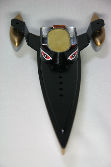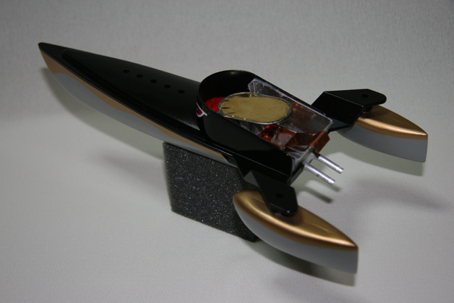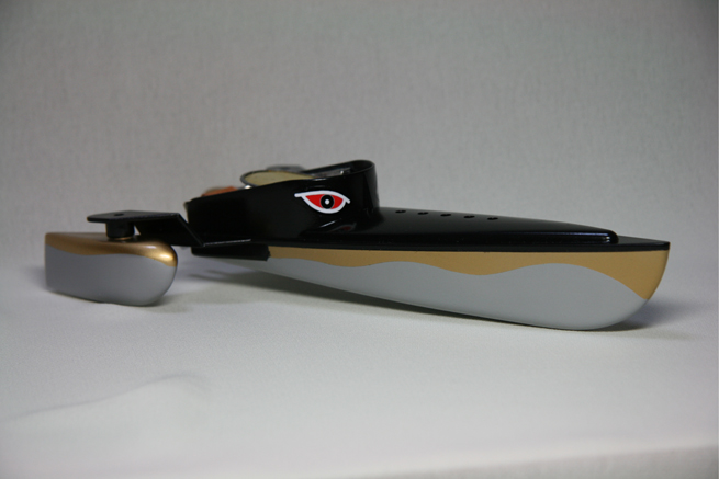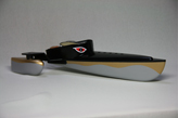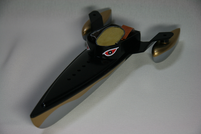 そうすると元の船体の部品が余るわけだけれど、これが見た目なかなか格好良いので、こいつを利用してもう一隻作れないかとネットで検索したら、まだ昔のオモチャのポンポン船を売っているところがあってそれを買ってのそのエンジンをこちらに流用して仕上げた。(昔10円かそこらだったのが780円(送料別!)するけど・・) |