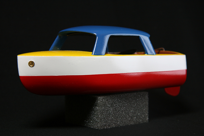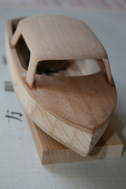 あり合わせの木っ端で作ったので船体の形になったところまでは割と早かったのだけれど、塗装する段になって手抜きで使った缶スプレーのたちが悪くて(乾いたと思ってマスキングするとマスキングテープの引っ張りでしわしわになったりする。)何遍も塗り直して手間取った。
