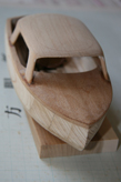 材料は手元にあった木を適当に使ったので、天井がアガチスの板三枚の貼り合わせで、しかもブリキ風に思い切り裏側から彫り込んでしまっているのでとても柔に出来ている。